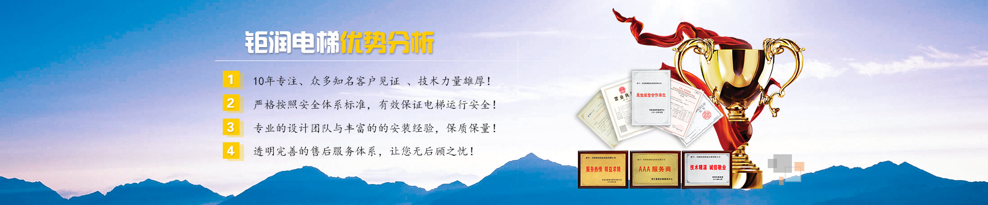 河南鉅潤機電設備有限公司集電梯安全技術開發、銷售安裝、維修保養、大修改造、裝飾裝璜、技術咨詢為一體的技術企業。公司技術力量雄厚,有專業技術人員從事電梯的安裝維修和技術開發工作,具有豐富的實踐經驗和理論知識。 公司本著“把誠信當作自己的生命,把自己當作電梯的潤滑劑”的宗旨,對員工進行技術培訓的同時,還加強安全教育,不僅強調過硬的技術,而且要求具備良好的品質,將“文明服務、安全生產、質優價廉”的經營理念,貫徹到公司的各個工作環節,得到了廣大用戶的認可和好評。公司安裝維修的電梯從未出現過質量安全事故的投訴事件,在同行業中樹立了良好的企業形象。 公司設有綜合辦公室、業務部、工程部、維保部、客... ...